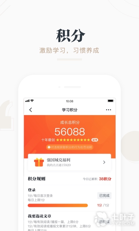 首先如何获得积分,用户通过在学习强国上完成学习行为(登录、阅读文章、观看
