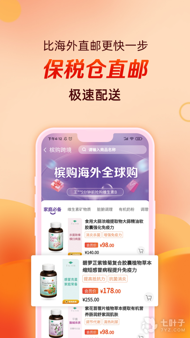 1、槟购跨境特别不错的网购单品,每天会准时更新一些喜欢的商品哦,猜你喜欢的商品,手机移动支付,如商品不满意在七天内可以退换的,商家同时会商品买一些运费险,网购很便捷哦