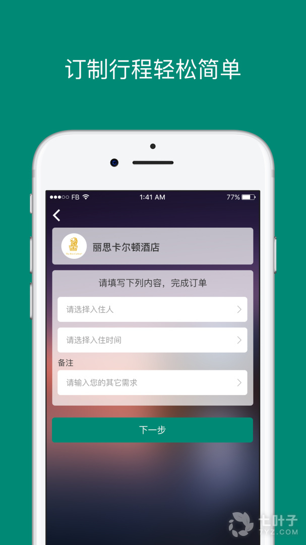 3.选择入住人、入住时间、输入需求即可在线完成酒店订制