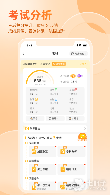1、考试成绩,记录每一次考试评分、排名,模拟查询排名,学习定位更精确更便捷