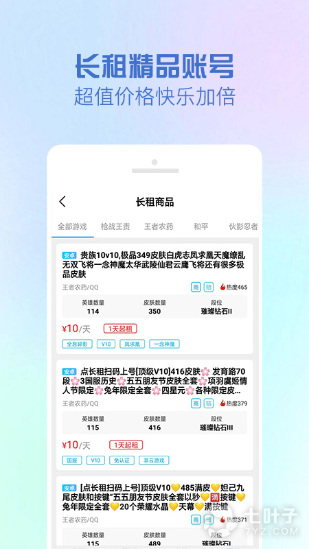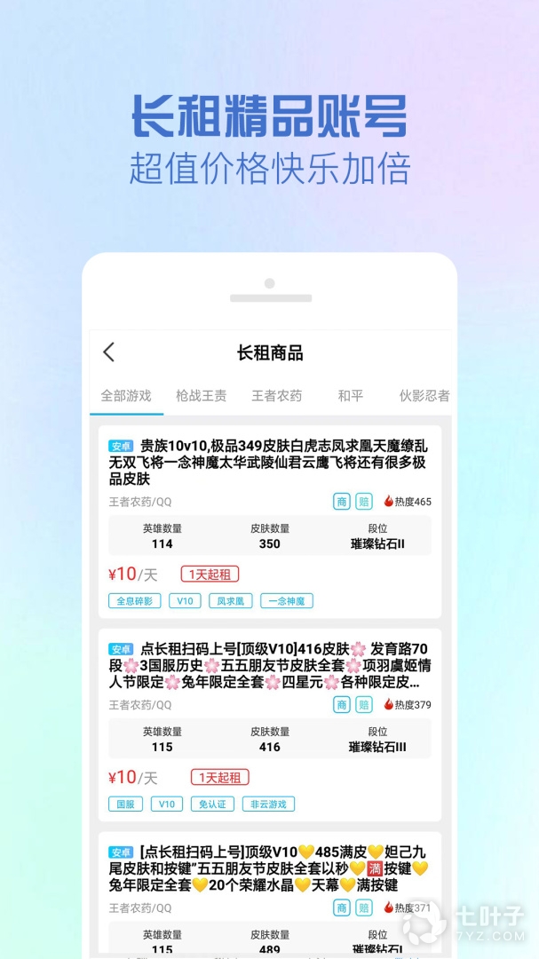 1、汇集了各类热门的游戏账号,轻松租号,价格实惠一键快速上号,与你的朋友一起游戏,平台安全的保证交易,让双方都使用的放心