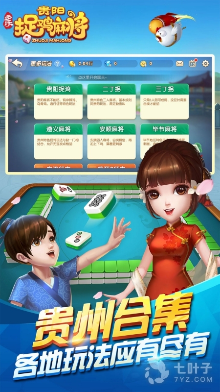 多乐贵阳捉鸡麻将——贵阳捉鸡麻将起源于贵州地区,流行于贵阳、四川等地区。贵阳捉鸡麻将以其独特的玩法、绝对刺激的游戏规则,得到全国各地麻友的推崇!只有万、条、筒,不可以吃,可以碰杠。更有地道的冲锋鸡、责任鸡、摇摆鸡、满堂鸡玩法。
