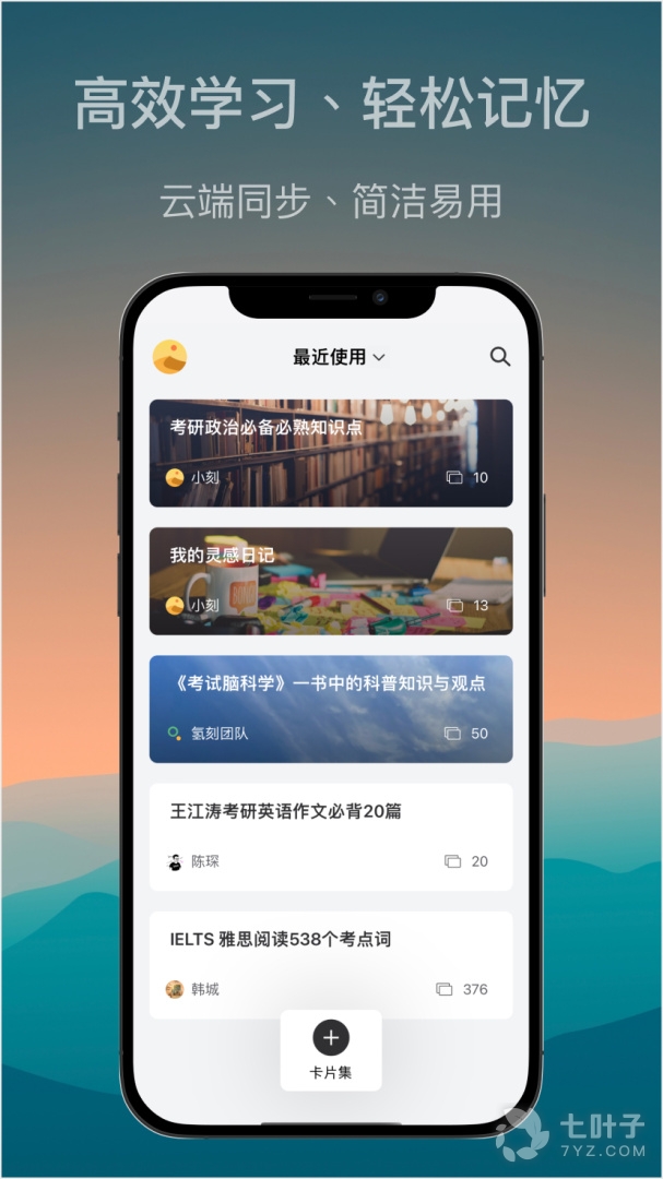 1、可以将需要背诵记忆的内容,提取成卡片,利用氢刻的学习模式进行有效记忆。