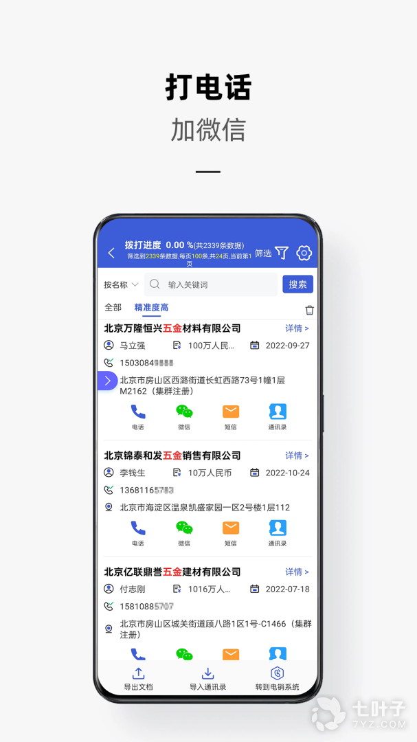 2、强大统计功能;记录 未拨通、已拨通、未拨打、已拨打,可将号码同步到通讯录或导出文档