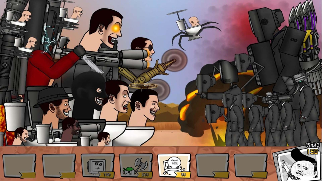 1、还原诸多经典的监控头以及马桶人角色,战斗的能力和方式完全不同,具有十足的策略性