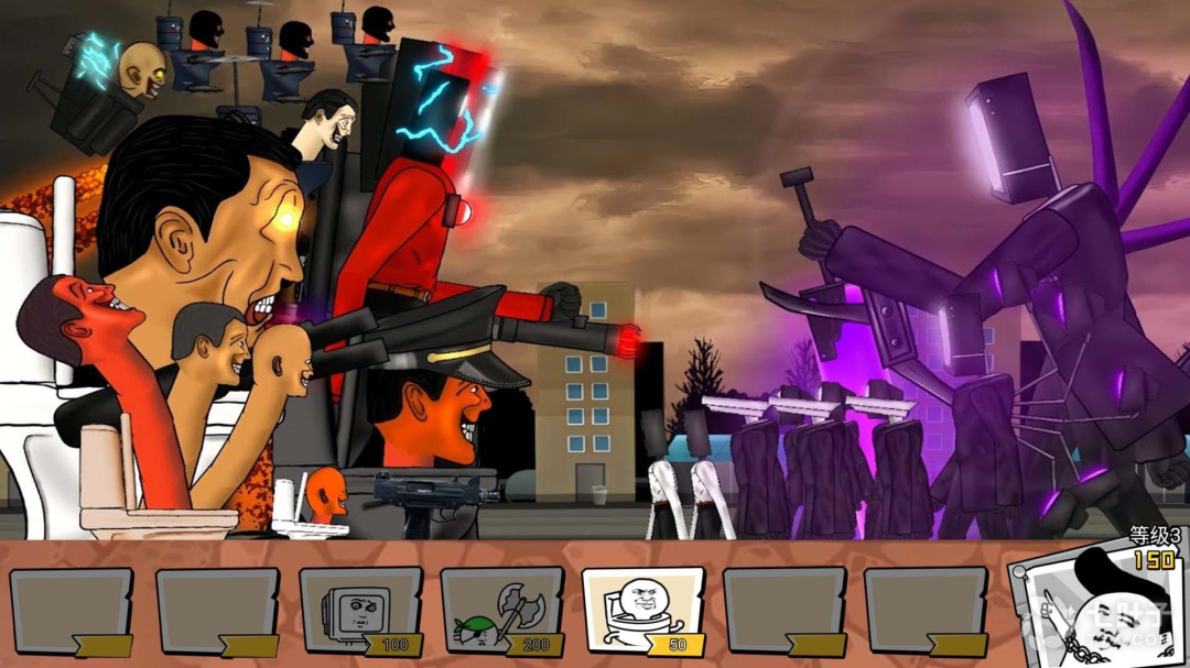 外加中型电视人此时钱不能乱花最多只能买两个中型音响人到导弹马桶人来的时候直接释放泰坦电视人,确保泰坦电视人能打死导弹马桶人再释放无双战神即可偷家成功。