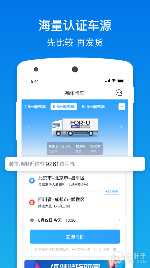 1、聚集了丰富的发货员与卡车司机资源,与知名货主企业合作,为用户带来高效的整车运输体验