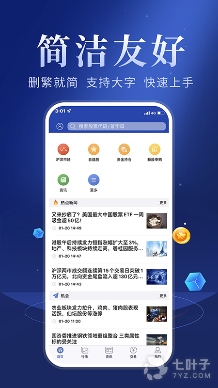 资讯研究:提供强大的资讯内容,囊括财经热点新闻、行业动态、个股机会、新股资讯、数据掘金、港股、美股、基金、理财等全面资讯内容。