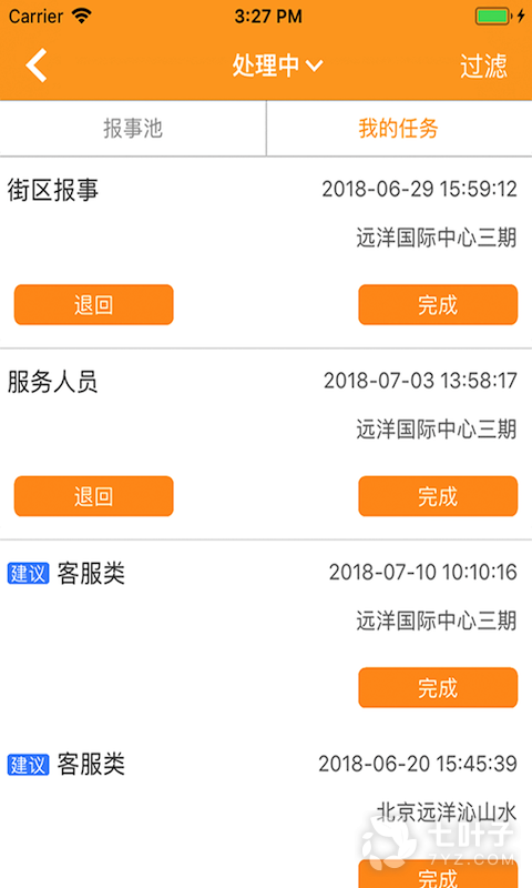报事处理:用户可在APP端对于小区业主的报事进行处理;