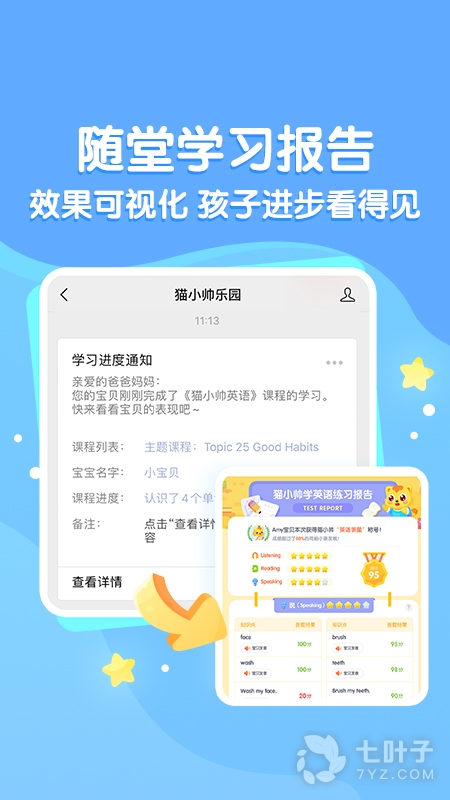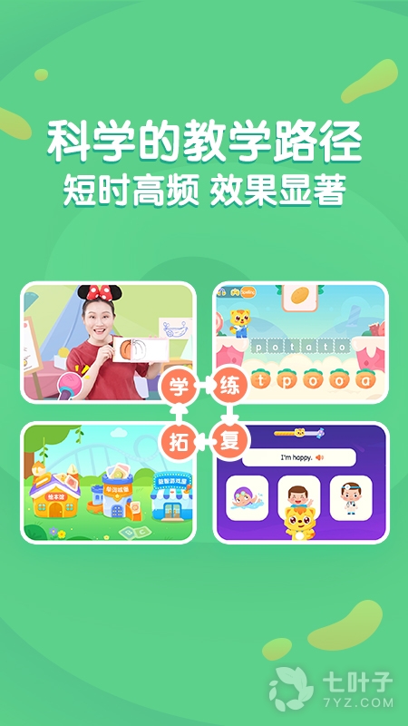 2、AI互动练习,让孩子的口语学习可视化,激励孩子开口流利说。AI智能评分实时纠音,提高少儿英文口语能力,让孩子爱学、敢说、说得准