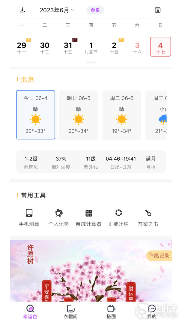 3、该软件拥有五行色、各种的吉时搭配全新的内容、元神测试等功能服务