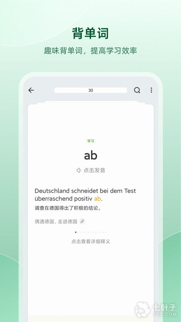 3、这款软件拥有强大的学习功能,内置多种德语词典,能够方便用户随时查询,软件采用纯正的德语发音,能够帮助用户训练口语能力,喜欢的话就来下载吧