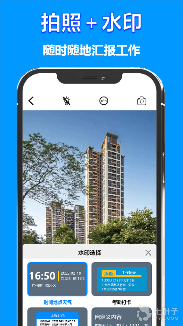 1、打卡水印丰富,涵盖天气、时间、定位、经纬度、海拔等,真实还原工作或生活场景