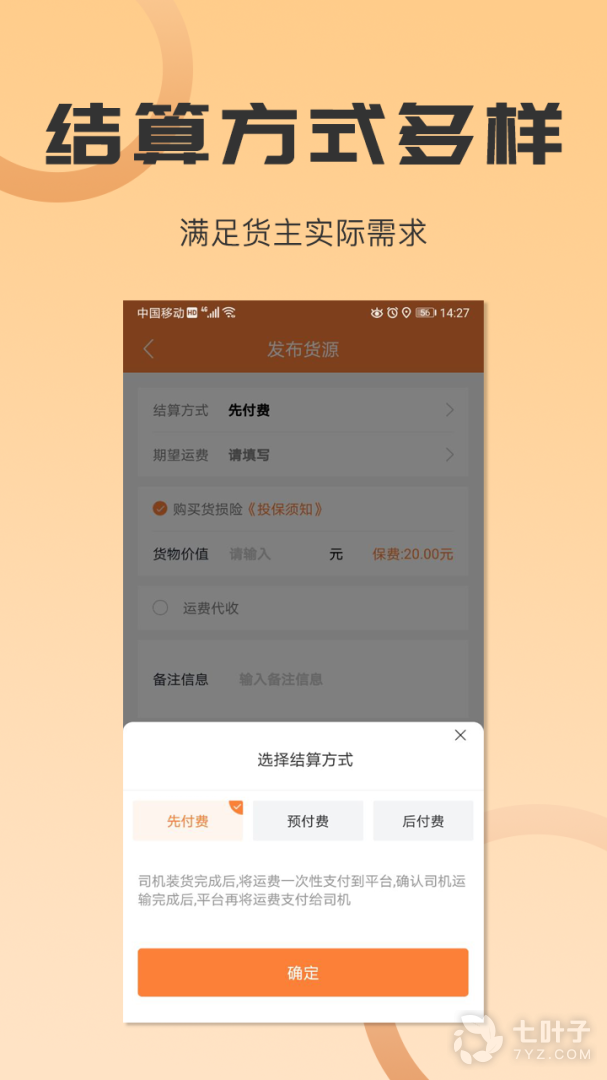 匹配车源,为货主提供车队管理、开具物流增值税发票、低价货运保险等服务。