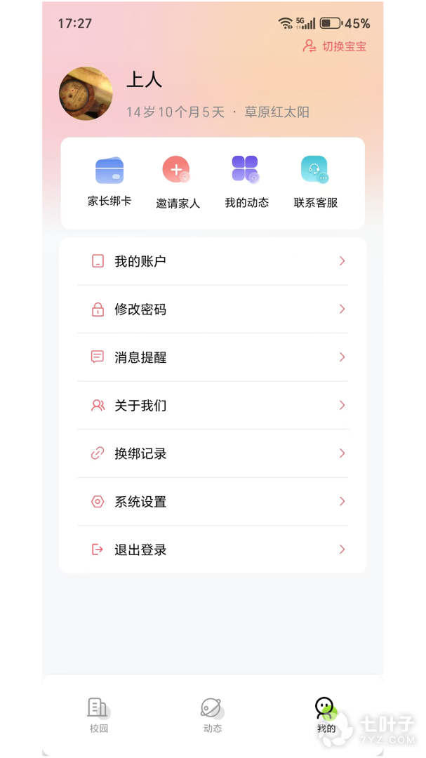 在微校中点击『考勤系统』,显示自己宝宝每天入园和离园时间,并可以将接送宝宝人员的照片发送至家长手机。