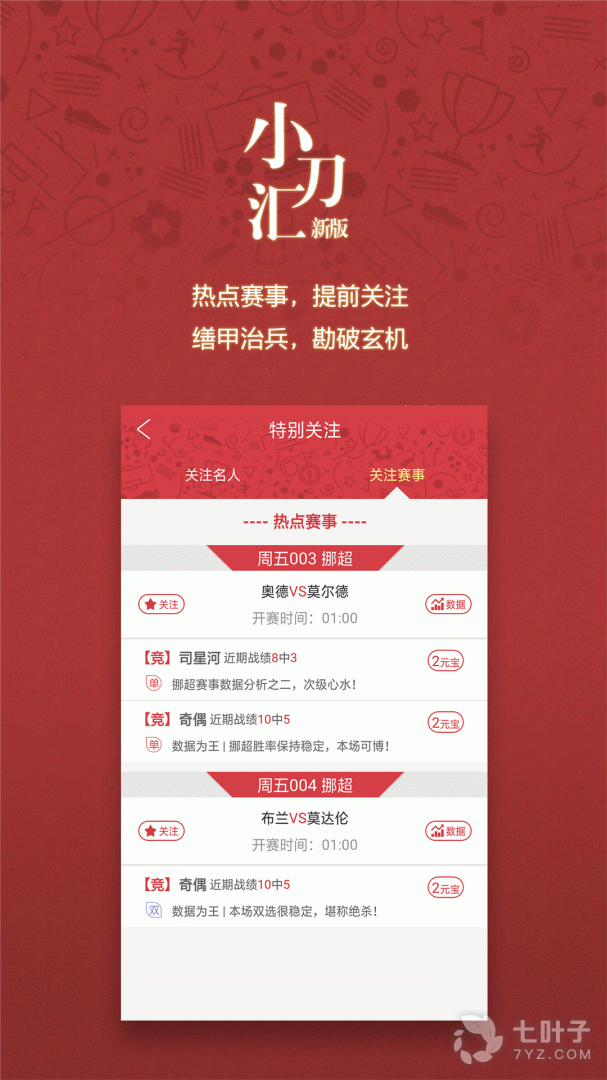 3、关注功能可以帮助您时刻掌握自己信任的专家或者感兴趣比赛的新动态,及时了解专家和比赛的新分析推荐