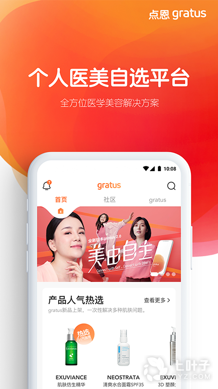 点恩gratus App,是点恩贸易(上海)有限公司打造的掌上医美产品专柜服务平台,超多专业的医学美容解决方案为您提供,并有专业的医美社区与达人分享交流,还有超个性化的AI智能推荐服务。