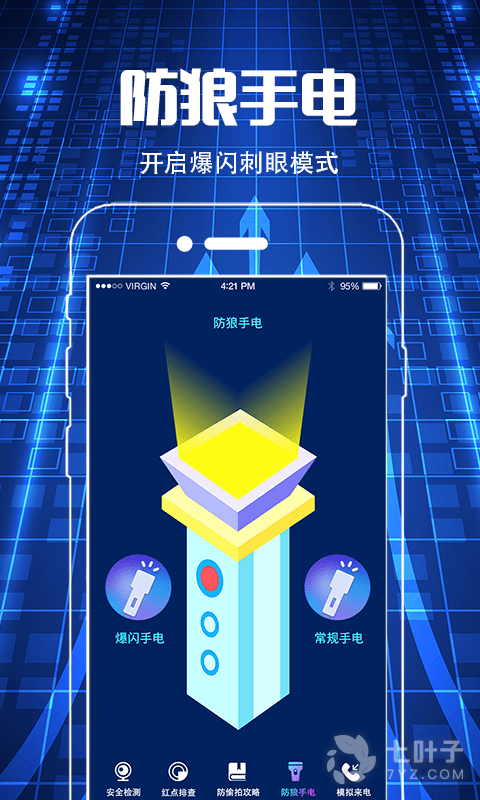 4、提供的手电筒工具包含常规手电筒和爆闪手电筒两种模式
