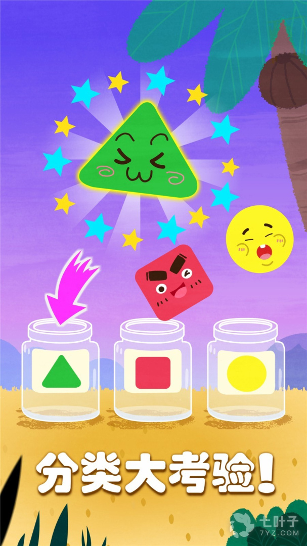 山洞里好黑,找不到维修工具?别担心,分类收集发光精灵,就能照亮山洞!把精灵们按大小、颜色、形状等归类,分别放进对应的玻璃瓶吧。(提升儿童归类能力)