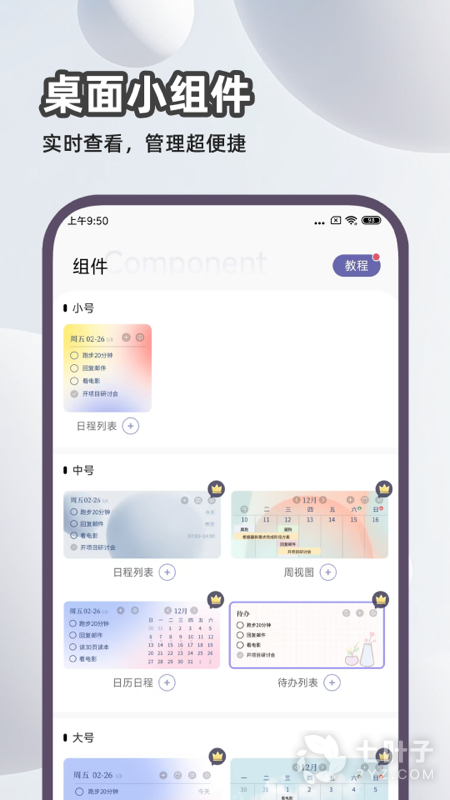 4、点击组件栏,可以把目标和日程放置到桌面方面随时查看。