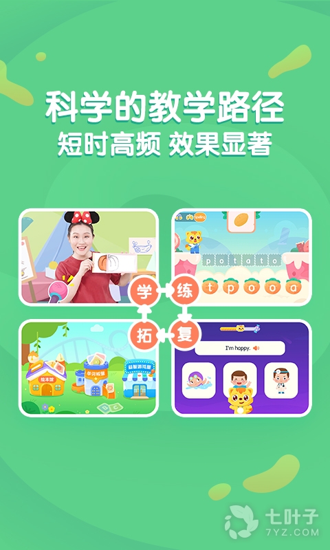 5、下载App即可免费领取价值128元少儿英语体验课!2节趣味主题课程+2节自然拼读课程,包含5个原创英语启蒙动画,4次教师互动教学,200+次英语发音练习。每天黄金15分钟,零基础成长为世界小公民