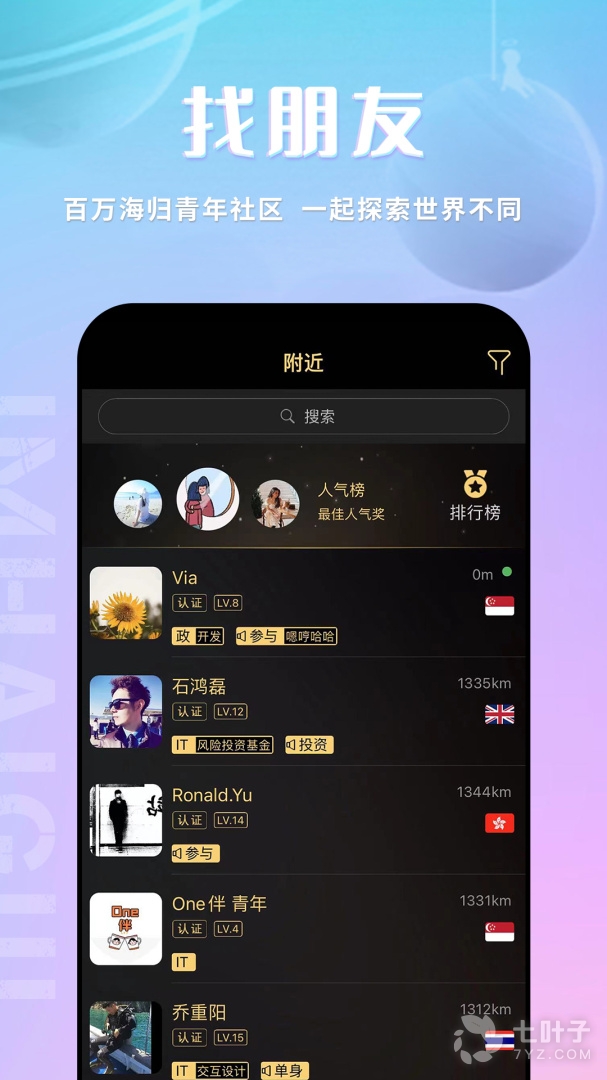 •附近Nearby:发现身边海归,偶遇新鲜事物。