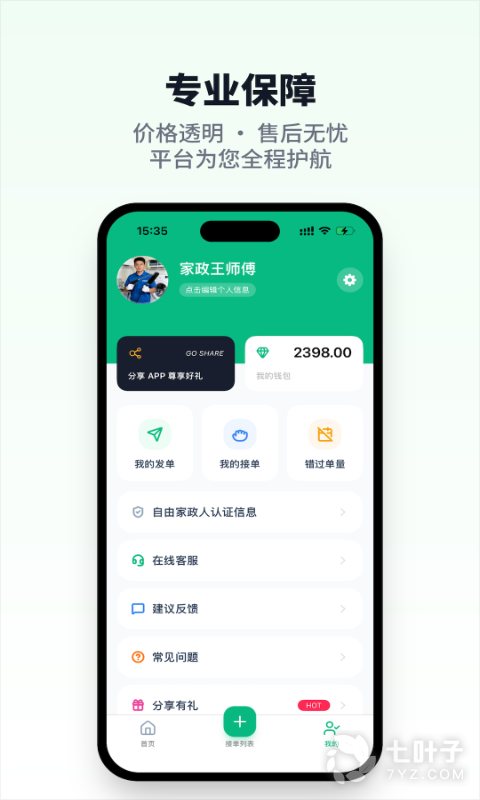 5、安全:安全可靠,服务人员实名认证
