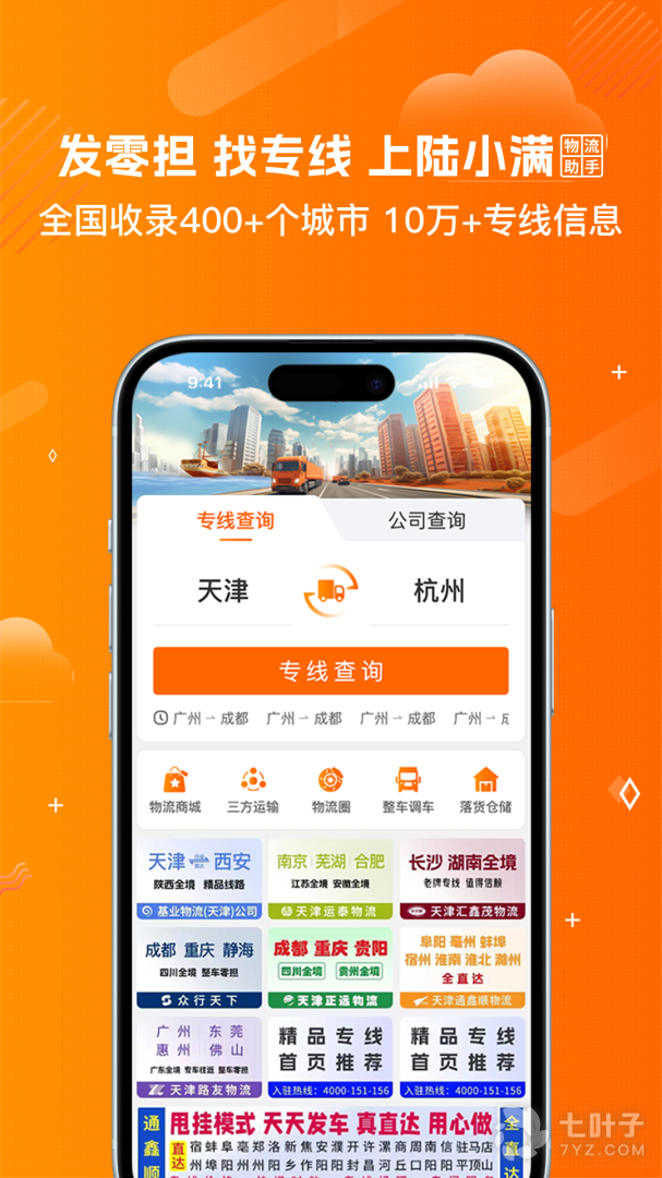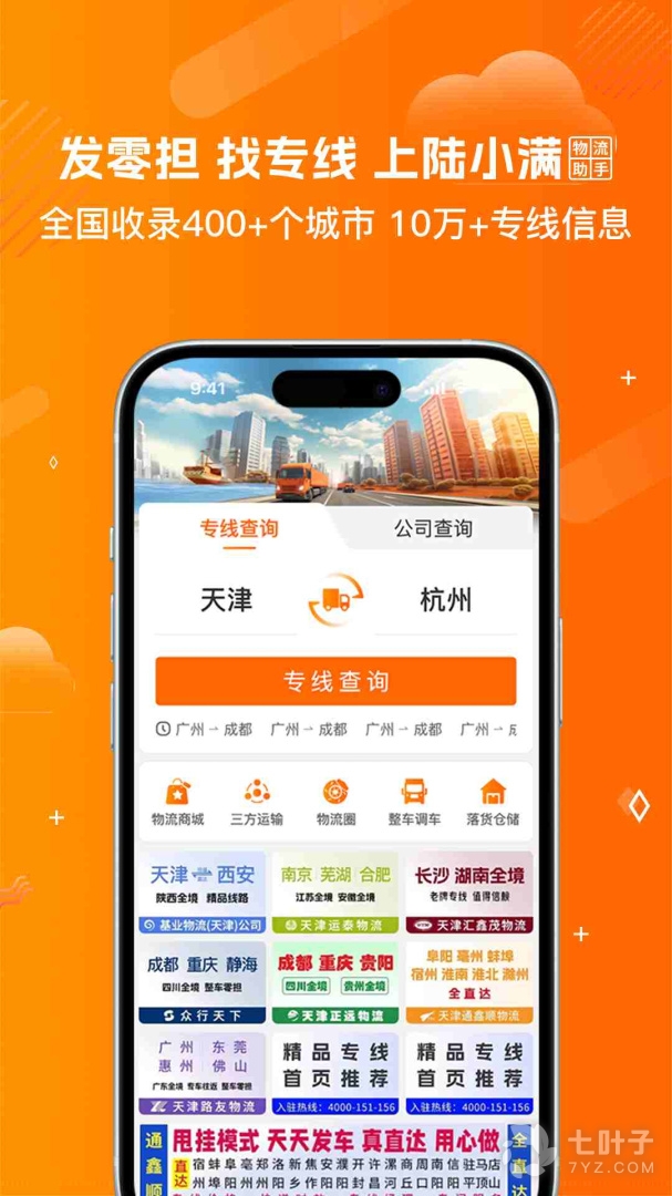 3、数百城市10万+物流专线,在线快速查询