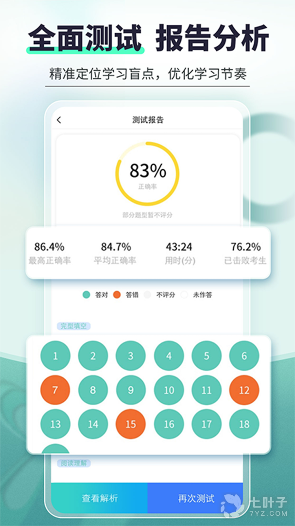 可以直接查看平台提供的数据分析,考生能够知道自己的学习短板。
