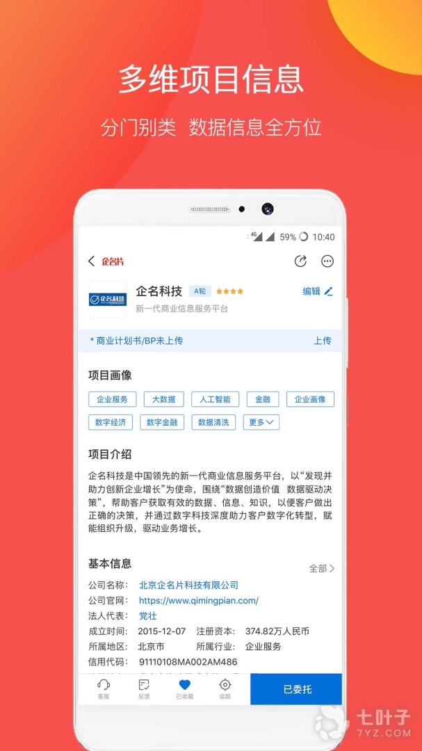 企名片(qimingpian.com)是国内领先的商业信息服务平台!企名片商业社区App结合人工智能与大数据处理技术,使用深度学习和NLP自然语言处理技术7x24小时全网采集、清洗数据并进行结构化处理,集数据聚合、数据建模和数据挖掘于一身,提供个性化资讯推荐,创业项目、投资机构、行业报告、招股书等数百种数据一站式查询服务。为投资人、创业者、FA、媒体等所有商业人士提供个性化、高级定制化的严选资讯头条和全网超火爆商业社区,打造个人商业名片和影响力。看资讯、聊商业、查数据就用企名片!