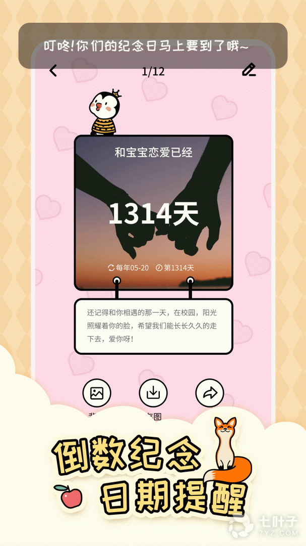 2、生活中很多重要的日子都可以在线上进行记录,到了重要的日子会提前提醒大家哦
