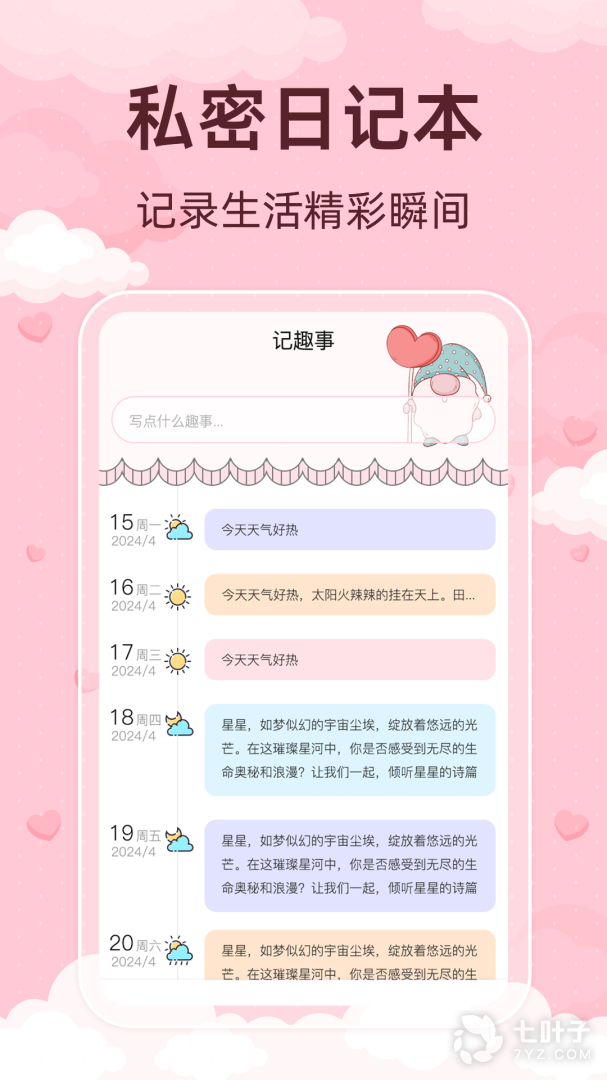 私密日记:记录你想对自己说的悄悄话,心情日记。