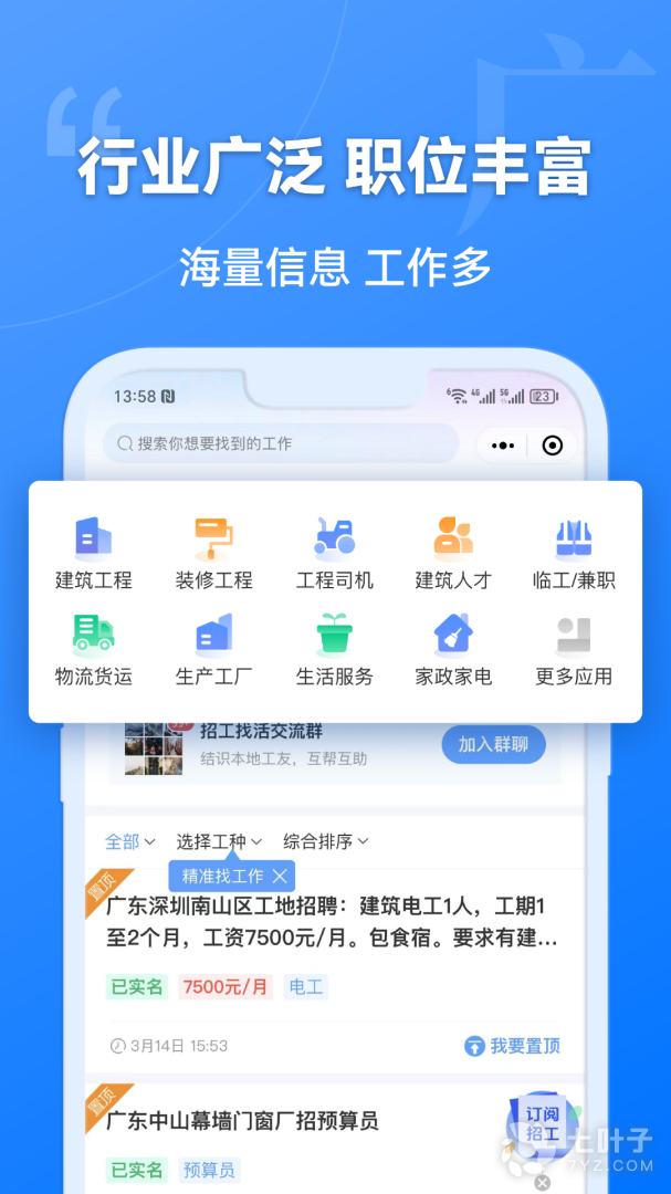 查看项目招工信息资源,工人可以在此查看企业的招聘信息