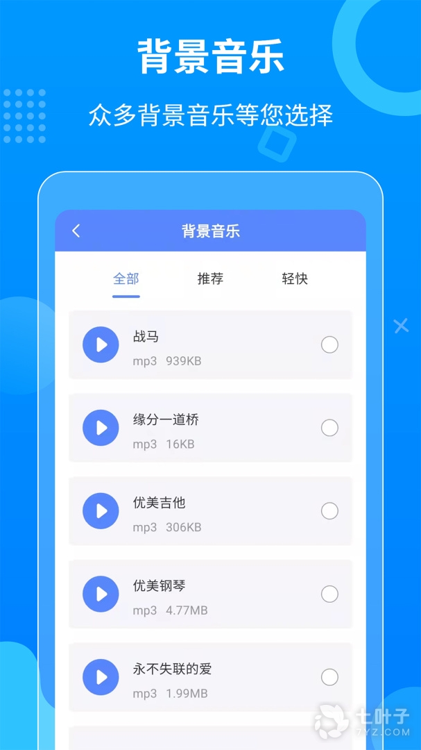 4、背景音乐,众多背景音乐等你来选择,让你使用更加方便
