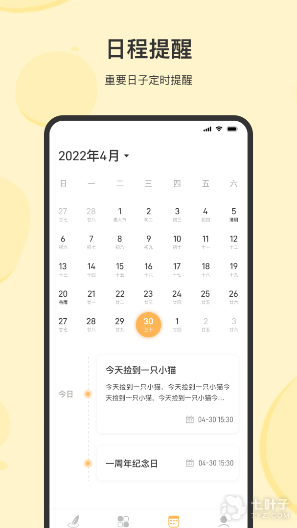 2、支持情感和天气图标。可附带照片,选定时间提醒写日记