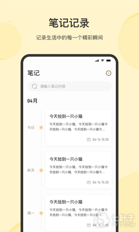 1、软件采用简约的界面设计,在这里用户可以很轻松的完成各种事务的记录,为你的生活,学习,工作带来便捷的记事服务