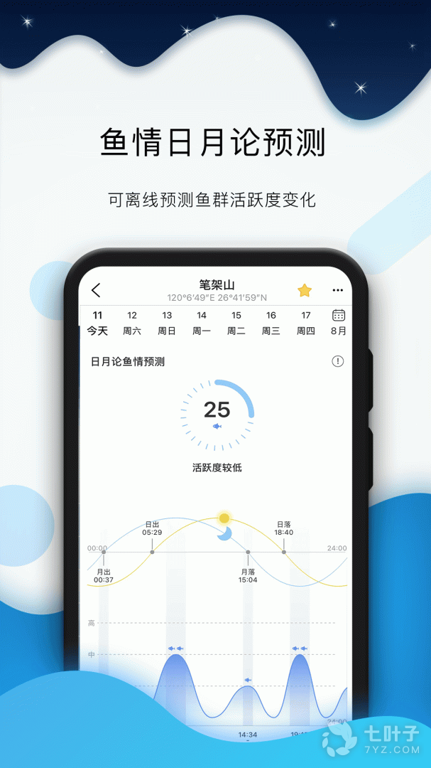4、每小时天气/风浪实时预报及鱼类活动预测分析,轻松选择最佳活动时机,让您不虚此行