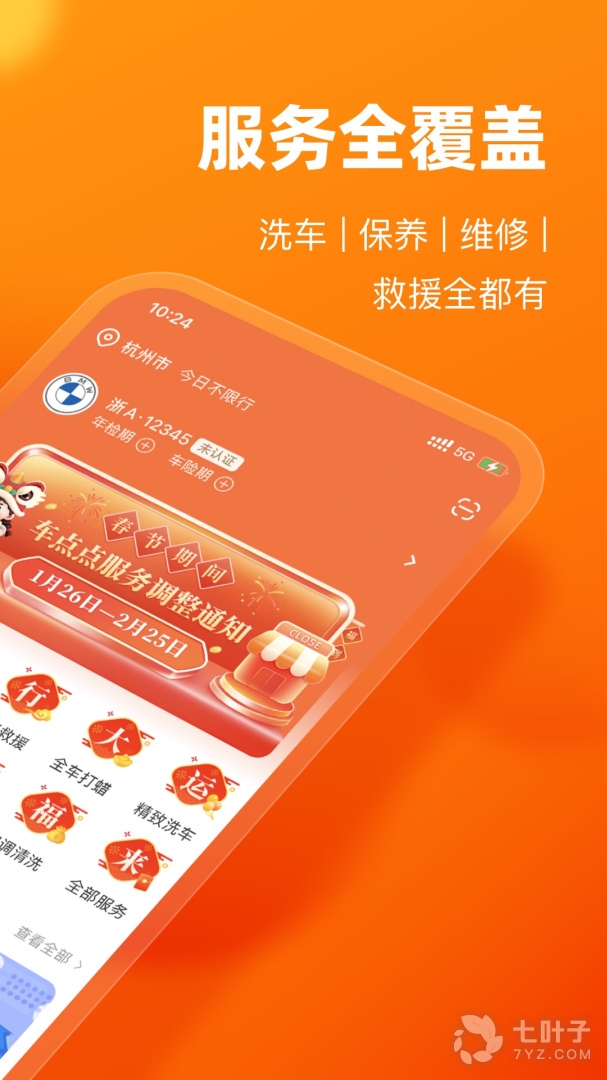 2、为您提供违章查询、洗车美容、维修保养、道路救援、车务代办、养车知识、周边商家查询等服务
