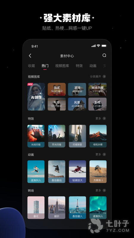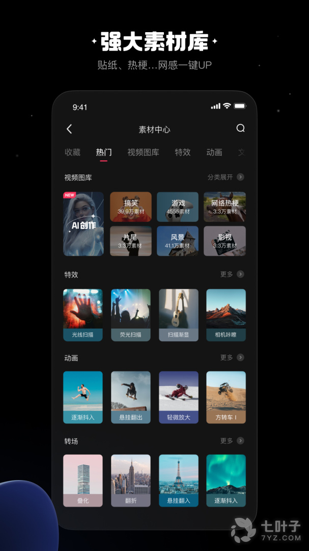 3.这款剪辑软件操作是非常简单的,还有丰富的素材提供给大家。