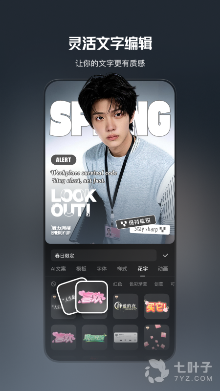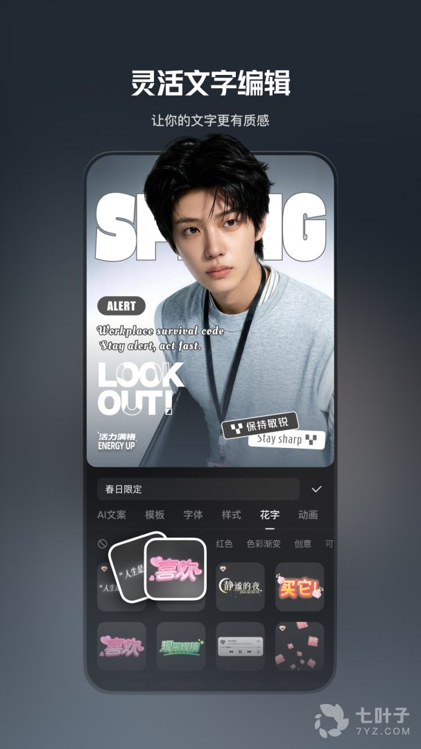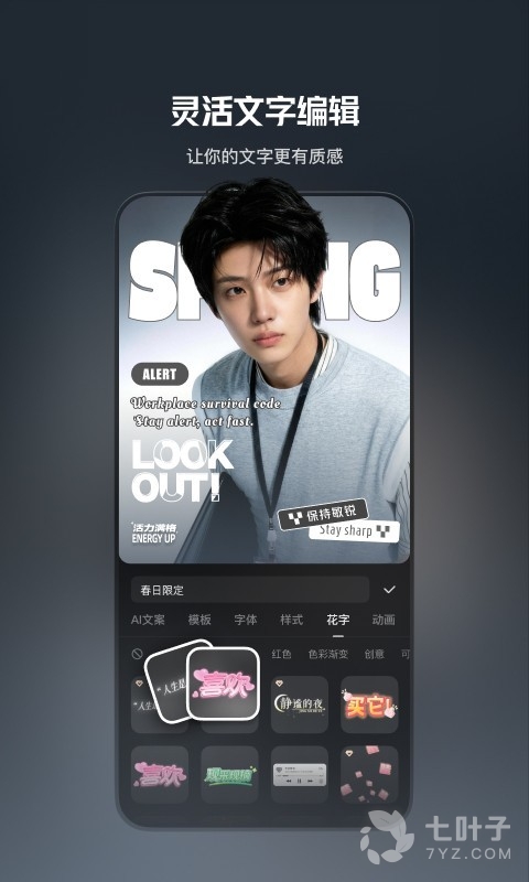3、精心画面效果,进行一键字幕识别或者丰富字幕效果等,支持一键分享,快速上传长视频到快手等短视频