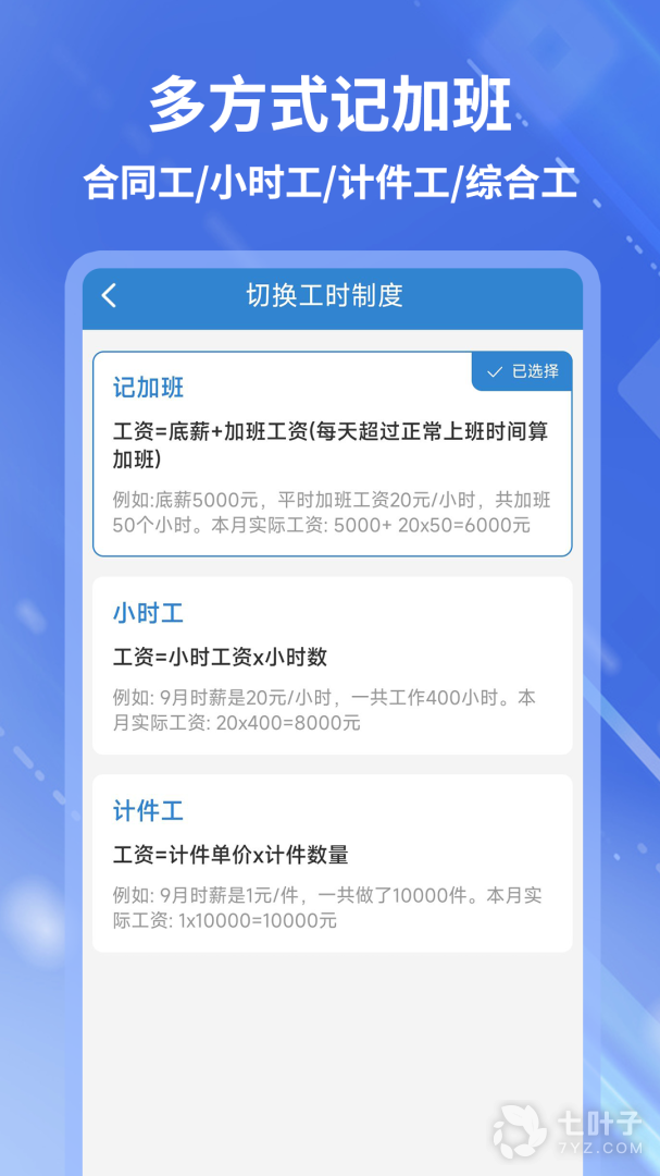 1、简单设置工资,立刻知道加班工资。再也不用等工资条啦