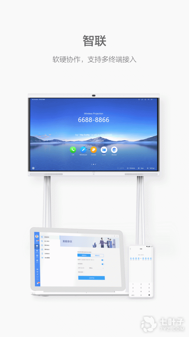 千人同时入会,超/高清视频会议,会议材料实时共享协作;支持智慧屏、手机、平板、电脑、专业会议终端等多端协同。