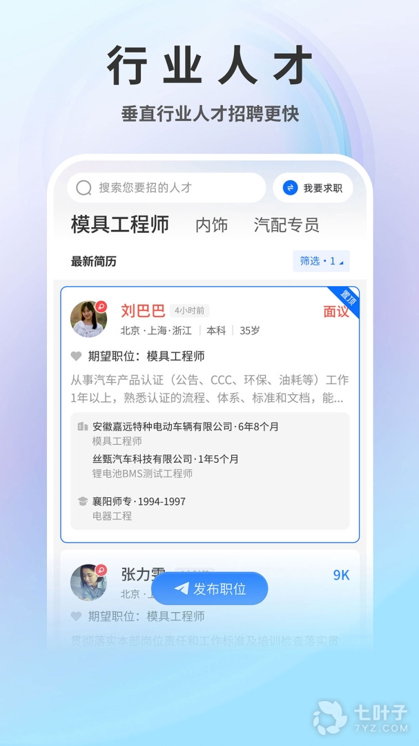 3、中国汽车人才网App是面向于汽车行业的求职招聘服务平台,权威审核每一条招聘信息,聚合全国各地的招聘信息,用户可以极速筛选钟意的工作岗位,行业工作岗位全面覆盖,可满足不同用户的求职需求,在线一键批量投递简历,响应极速,汽车行业求职必备