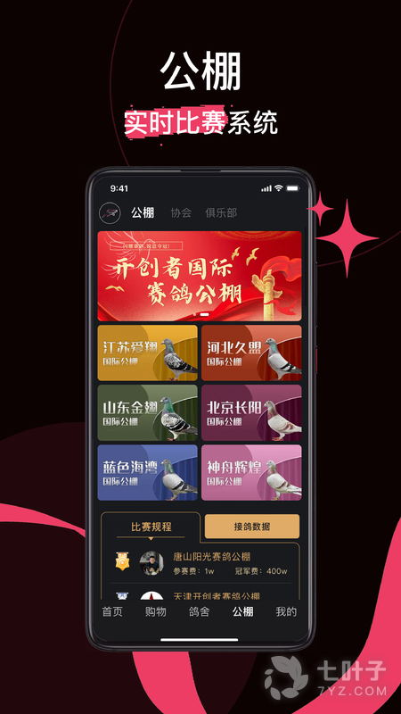 2、云养鸽功能,让你可以在线选购和养护赛鸽,查看赛鸽的基本信息和状态,还可以参与平台举办的各种赛事和竞猜活动。