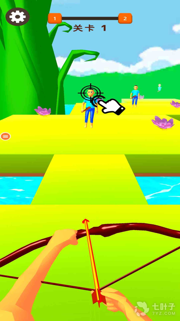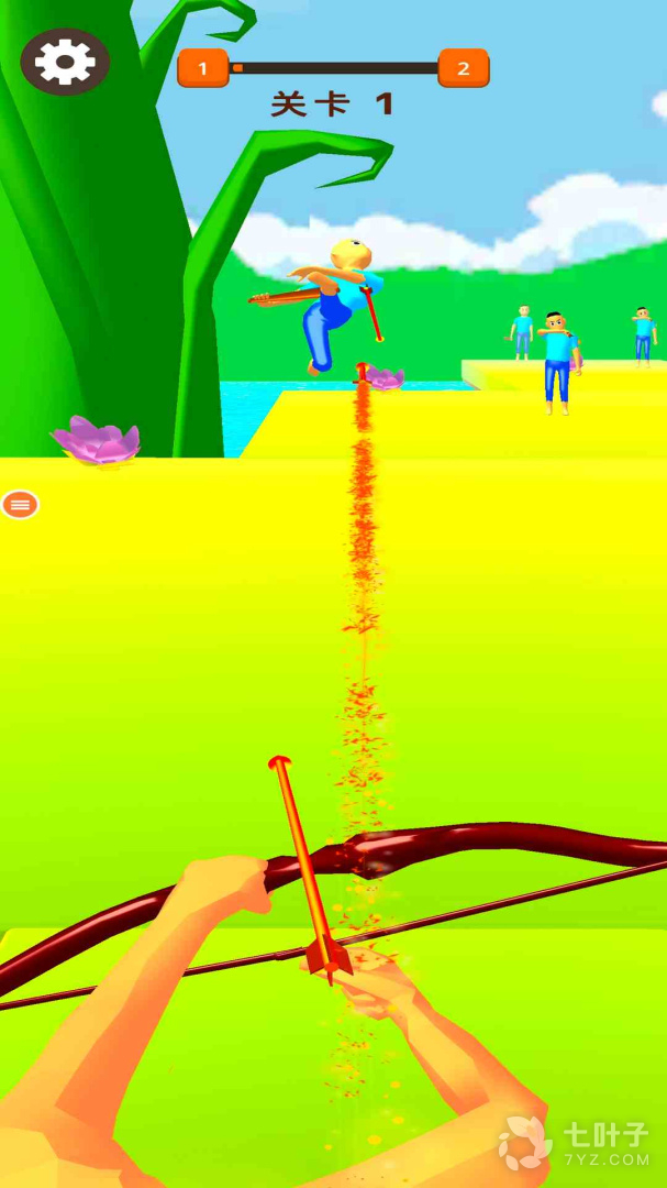 1、利用手指滑动屏幕来操控火柴人瞄准,点击即可蓄力,松手手指控制弓箭发射;