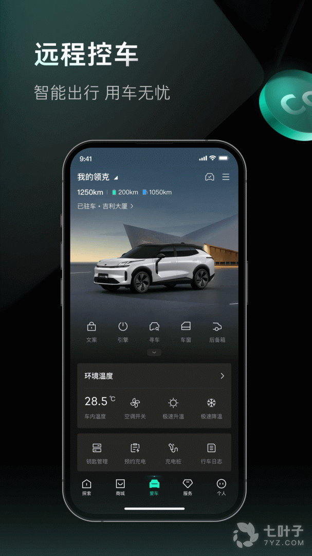 对于LynkCo系列车型,车主可以查看您的里程数,电池电量状态,以及附近的充电站信息