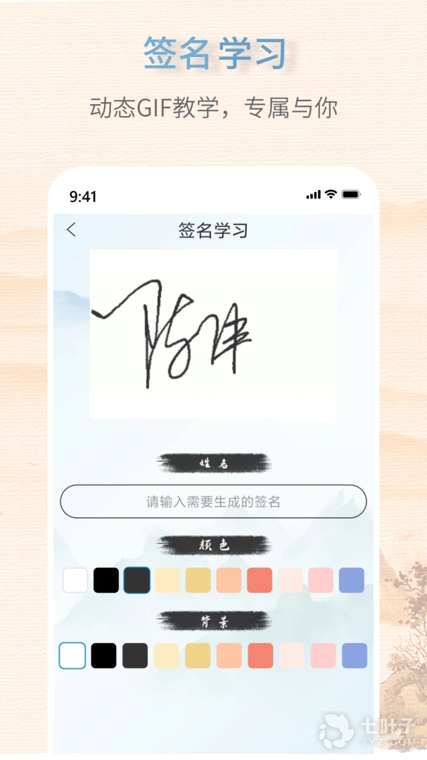 2.签名练习板,练习自己的签名