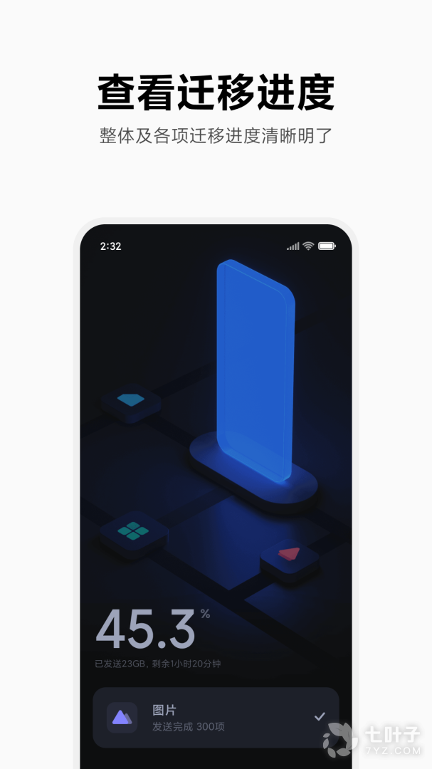 7、用户可以使用APP在手机上快速进行数据迁移,一键即可传输数据