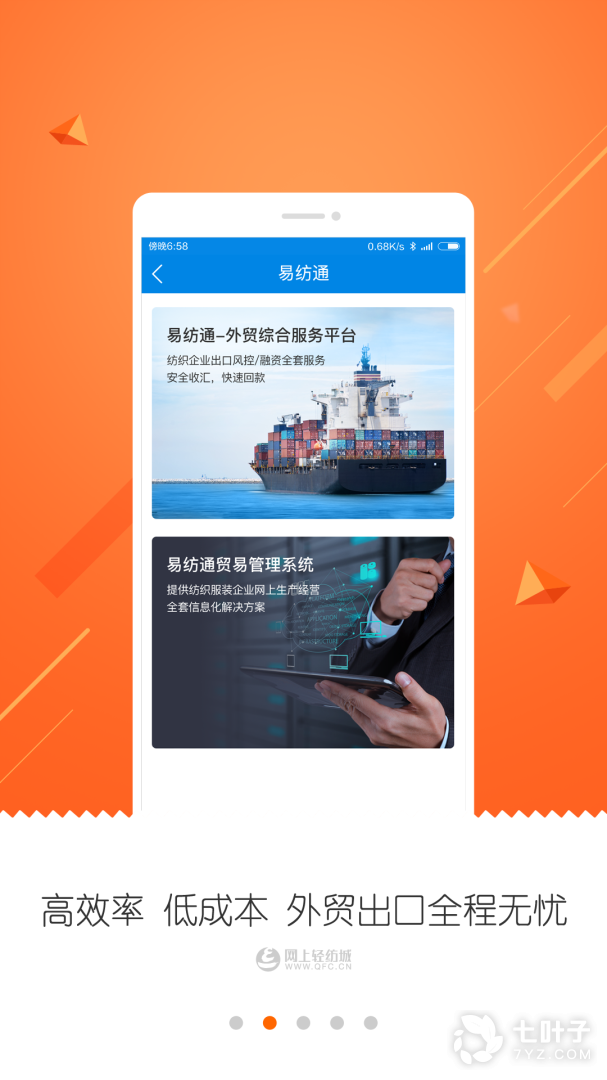 它是由网上轻纺城网站官方开发,为纺织从业者提供的手机应用,随时随地,抓住生意机会。APP与网上轻纺城大平台实现数据同步,在这里,供应商可以便捷开设、打理网上商铺,通过手机快速拍摄并发布新品信息,随时随地管理、跟进客户订单; 采购商能够在这里快速搜索感兴趣的纺织产品,发布采购需求,及有效管理相关订单。这里是纺织人士汇聚的移动平台,收藏店铺、互加好友,帮助您发展生意伙伴、保持客户联络;同时具备资讯浏览功能,每天推送纺织头条,及时掌握业界动态。