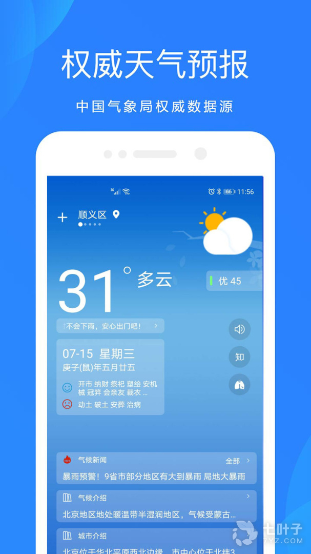 2、好运天气预报最新版,未来15天天气信息轻松查询,方便快捷,还支持实时天气显示、语音播报、知乎热门搜索等功能,快速掌握天气变化情况,让天气查询更省心